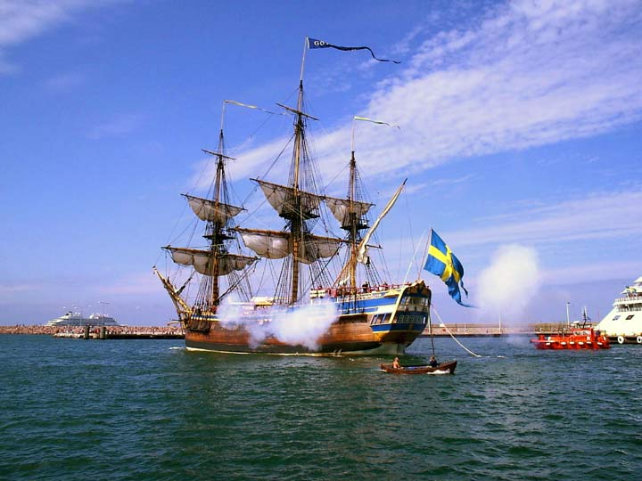 Som sig bör skjöts salut när Götheborg avseglade.