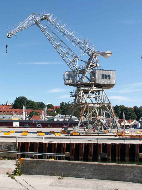 Kranen från Aarhus Maskinfabrik i Danmark är efterhand ett kulturmärke i Visby hamn